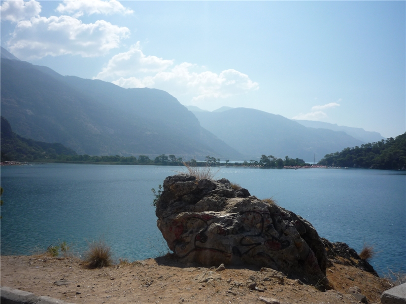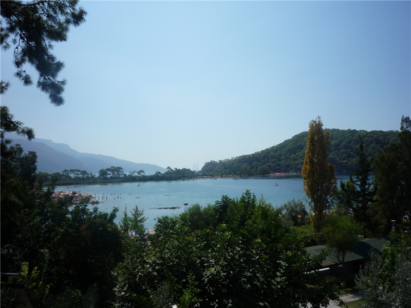 Ну что, Олюдениз меня разочаровал. Просто большого размера бухточка, вода в которой отличается от морской в сторону большей зеленцы, и видимо, более пресная, потому что по берегам кое-где прорывается камыш.