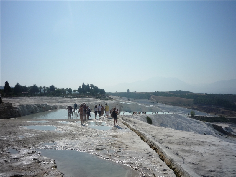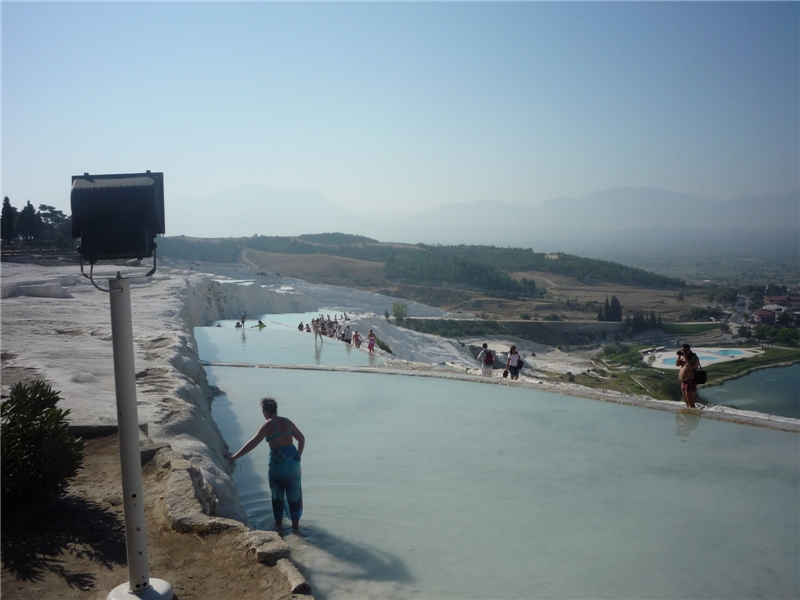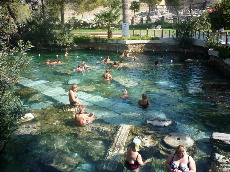 Парковка 4 TL, само посещение – 80 TL на четверых. Описывать Памуккакле и Гиераполис особо не буду, здесь уже побывала большая часть наших соотечественников, и инфы в Интернете достаточно. Поэтому просто пара-тройка фоток, в том числе и так называемый бассейн Клеоптры, где за 25 TL можно приобщиться к очередной туристической легенде о чудодейственном омолаживающем эффекте здешней воды, на что, судя по виду, говору и поведению булькающихся в бассейне, падки только русскоговорящие, привезенные опять же скопом из Анталии).