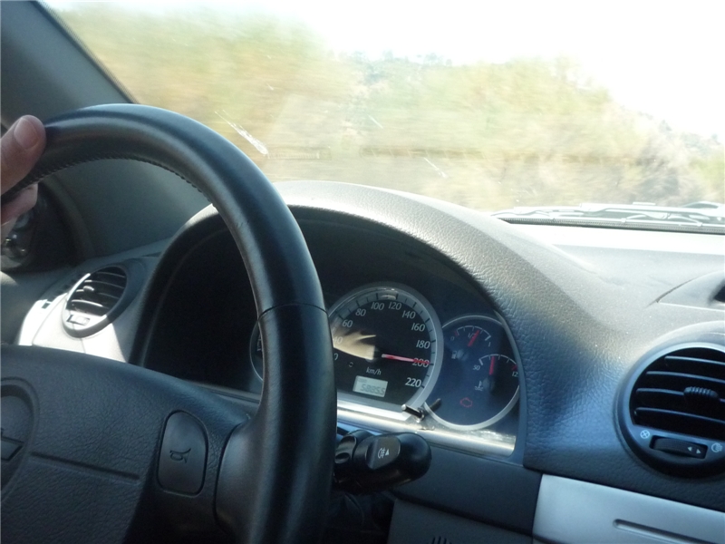Выезжаем на платную автодорогу. Качество ее таково, что правая нога сама невольно прижимает педаль, что приводит к результатам, показанным на фотке ниже. Это наш рекорд за путешествие, да и по-видимому, вообще навсегда, потому что в России такое невозможно из-за дерьмового качества наших «автомагистралей».