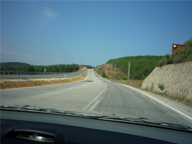 Дорога начинает подниматься немного вверх, и природа за окном разительно меняется, очень начинает напоминать болгарскую (я, правда, в Болгарии никогда не был, но именно так себе ее и представляю).