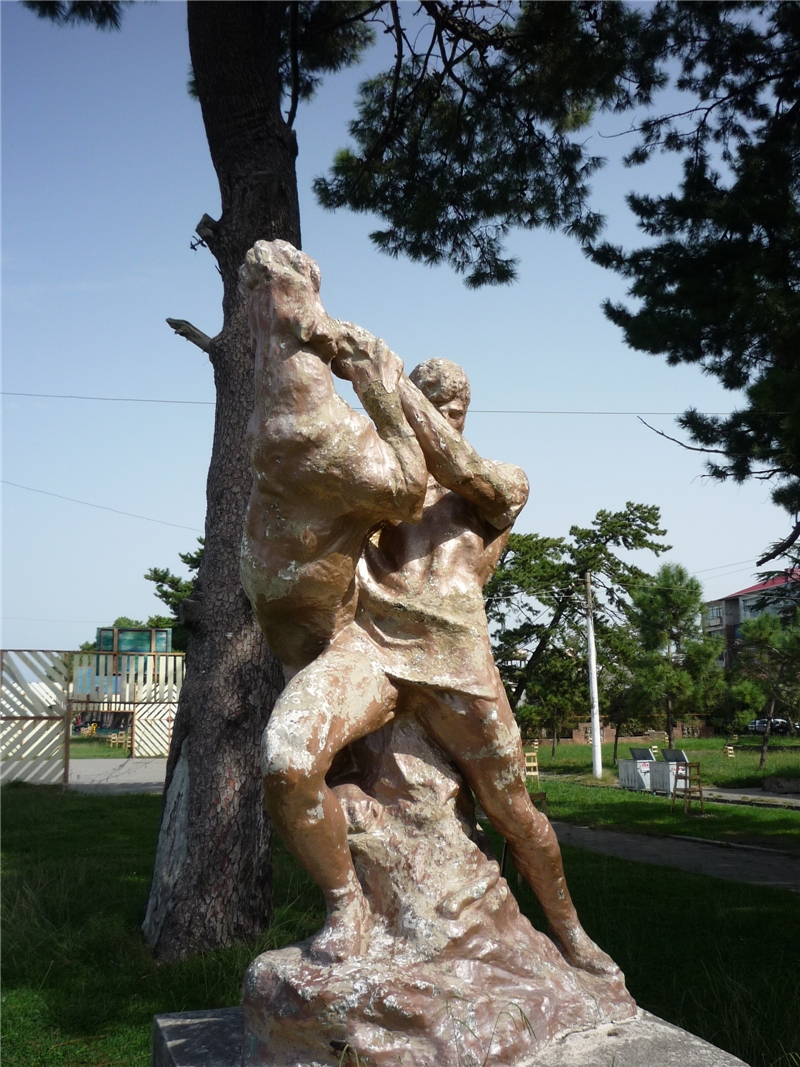 Статуя витязя в тигровой шкуре (вообще-то, Мцыри в шкуре снежного барса) сохранилась, видимо, с 60-х годов прошлого века.